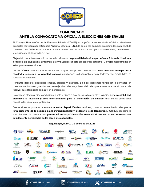Comunicado Convocatoria Oficial Elecciones General - COHEP