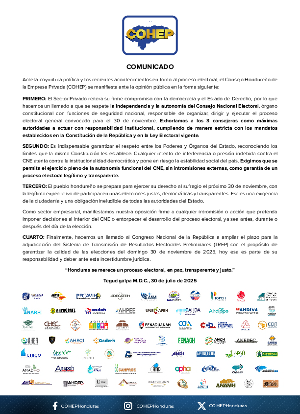 Comunicado Coyuntura Política 30-07-25 COHEP
