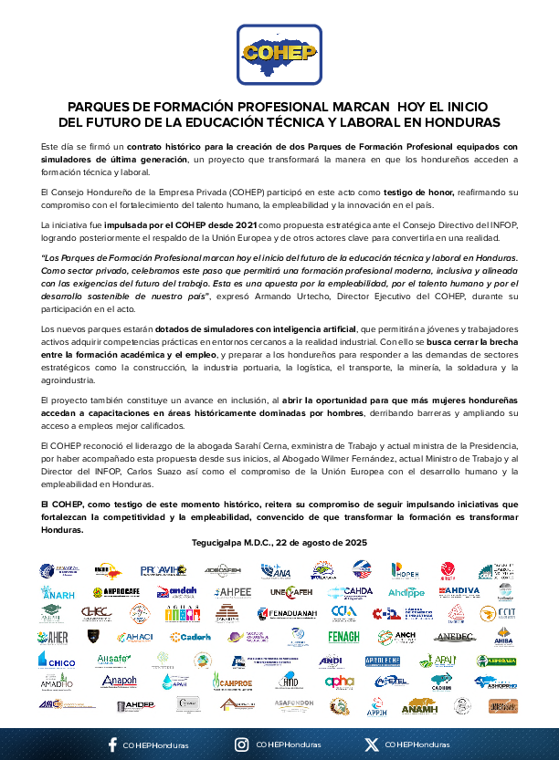 Consejo Hondureño de la Empresa Privada – COHEP.